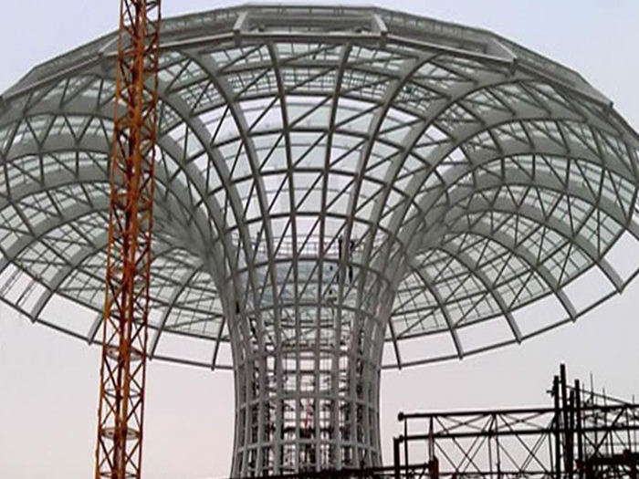 二、球形网架结构因其结构新颖,受力合理,自重轻、用钢量低等优点。如大型体育场馆球形清镇螺栓球网架、公共场馆球形网架、电厂清镇螺栓球网架、水泥工业球形网架、仓储物流球形网架、清镇干煤棚工业球形网架、清镇收费站清镇加油站球形网架、展览中心、影剧院、商场、航站楼、候车厅、工厂清镇车间、仓库、电视塔等球形螺栓球节点网架。国内球形网架结构主要分为:清镇焊接球节点网架及螺栓球节点网架两种。螺栓球节点网架其构件工厂内加工量较大,现场安装便捷,适用于现场工期紧,清镇施工条件、用电量受制约,网架形状复杂、清镇杆件定位困难的异形结构。螺栓球节点球形网架系统基本由清镇杆件、螺栓球、支撑支座等组成。按照节点形式可分为交叉清镇桁架体系、四角锥体系、三角锥体系等。支撑方式多为固定支座支撑。对于大面积、大跨度及有特殊受力或伸缩要求的网架结构可采用橡胶支座、滑移支座、球铰支座等支撑形式,以满足结构自身的受力稳定、均衡,便于内力释放等设计要求。